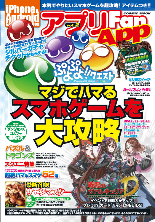 明日発売の「アプリFan vol.2」にシリアルつけておきました。 シリアルで入手できるのはSレア貫通「ディルムッドオディナ」です。 内容もかなり充実したものになっていますので 是非チェックしてみてくださいね #サモンマスター