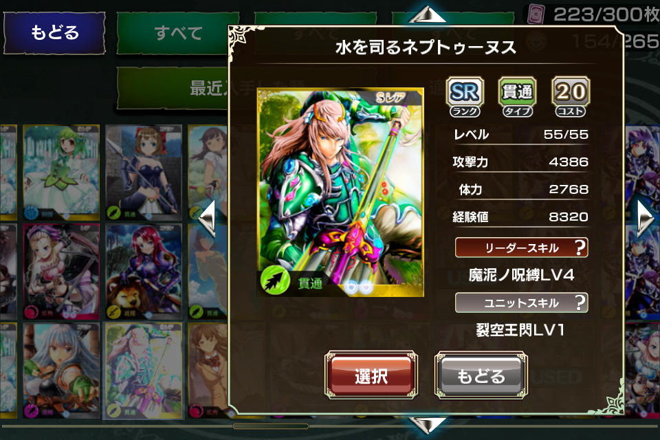 レアカードの「フォルトゥーナ」はステージクリア報酬分のみ。